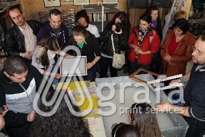 După o incursiune mai mult decât interesantă în istoria tiparului, completată de prezentarea unor gravuri rare şi tipărituri vechi, precum şi de poveştile din jurul fiecăruia, am putut experimenta şi procesul de producţie a hârtiei, iar fiecare dintre noi a putut realiza manual câte o foaie pentru a o lua acasă ca amintire.